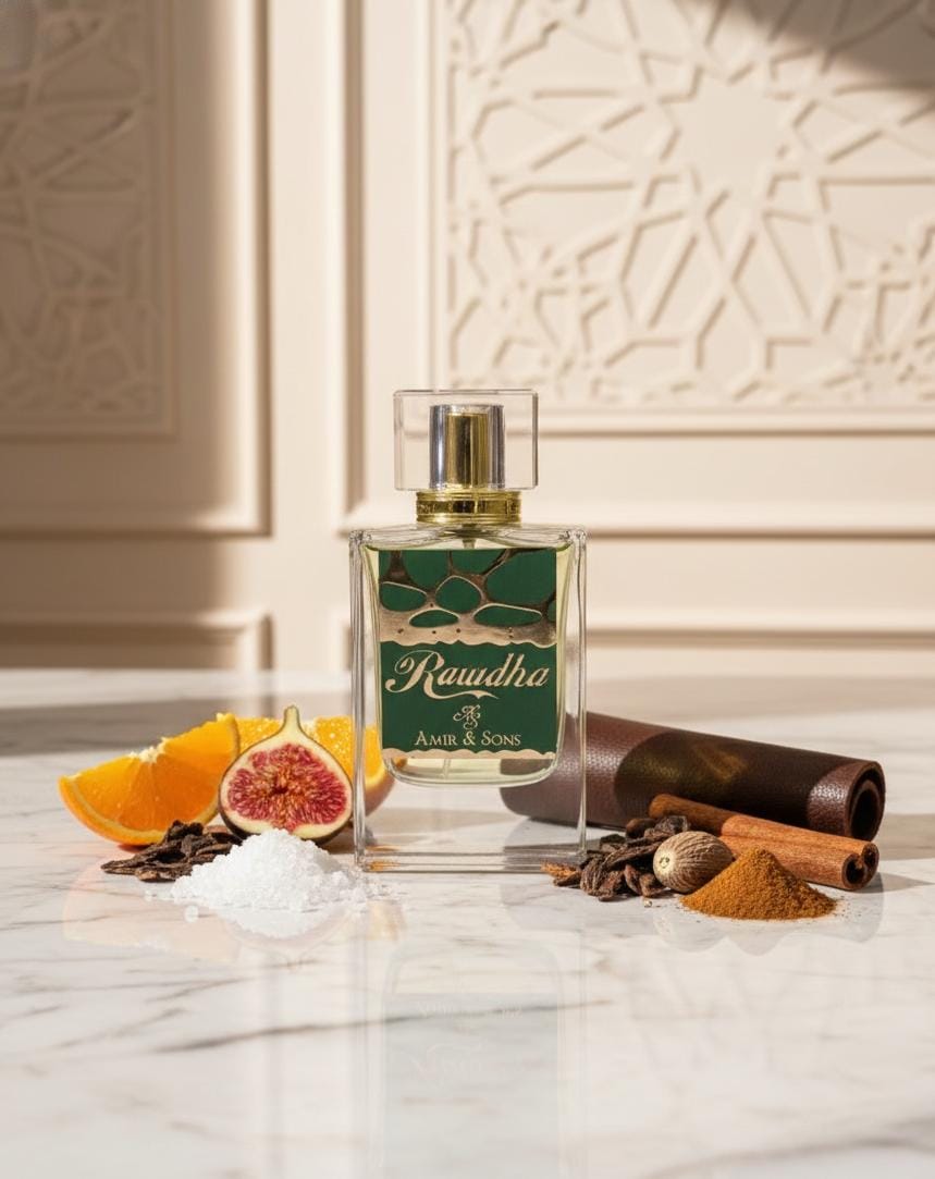 Rawdha opens with a refined burst of soft amber notes bright and uplifting, creating an instant sense of purity and calm.